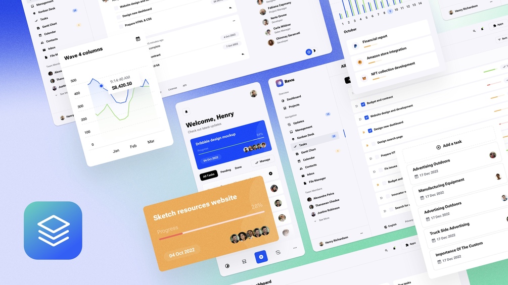 This bundle includes graphics assets and UI kits for CRM systems design. Create a stunning dashboard web or mobile app within minutes using our resources.