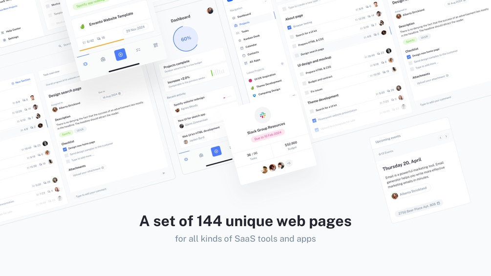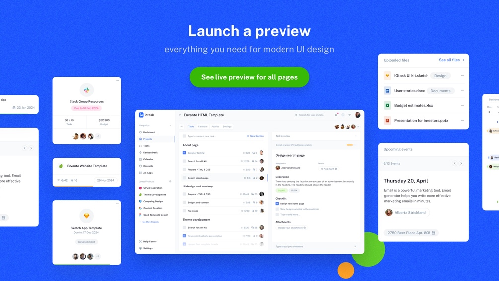 IOTASK Web UI kit is a modern, clean, and very detailed UI design kit compatible with Figma and Sketch apps. We designed lots of modern, highly detailed pages for your future SaaS project.