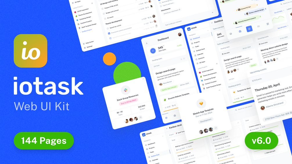 IOTask - Project Management Web UI Kit for Figma and Sketch
