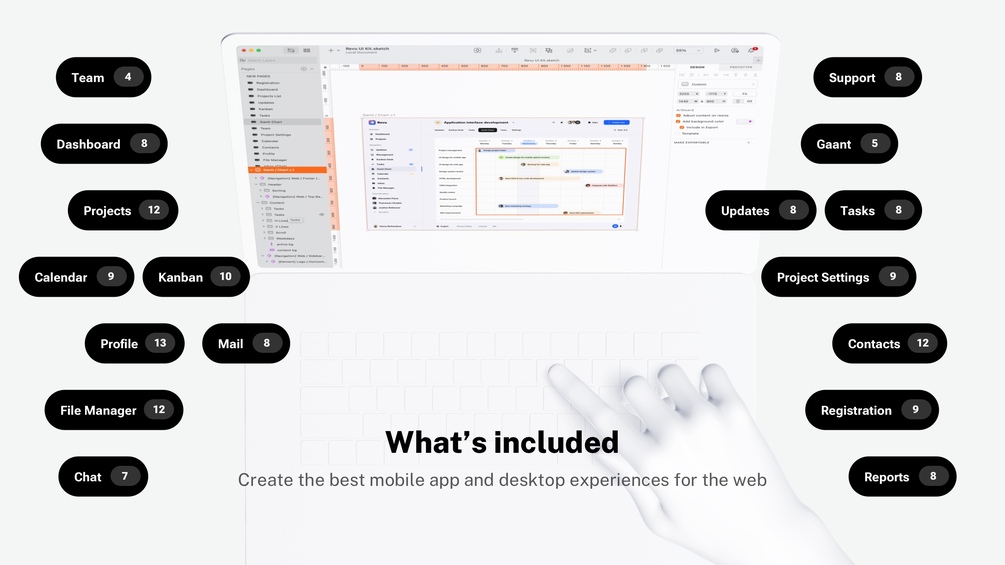 Design a project management app, calendar planner, dashboard, to-do app, kanban desk, database, CRM portal, and many more SaaS tools with Revu UI template.