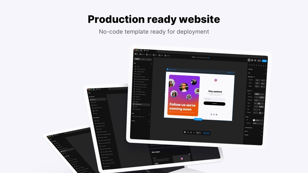 Check out 19 pre-made responsive pages ready for desktop, tablet and phone. Our template was made with Framer and all graphics resources are available in Sketch and Figma apps.